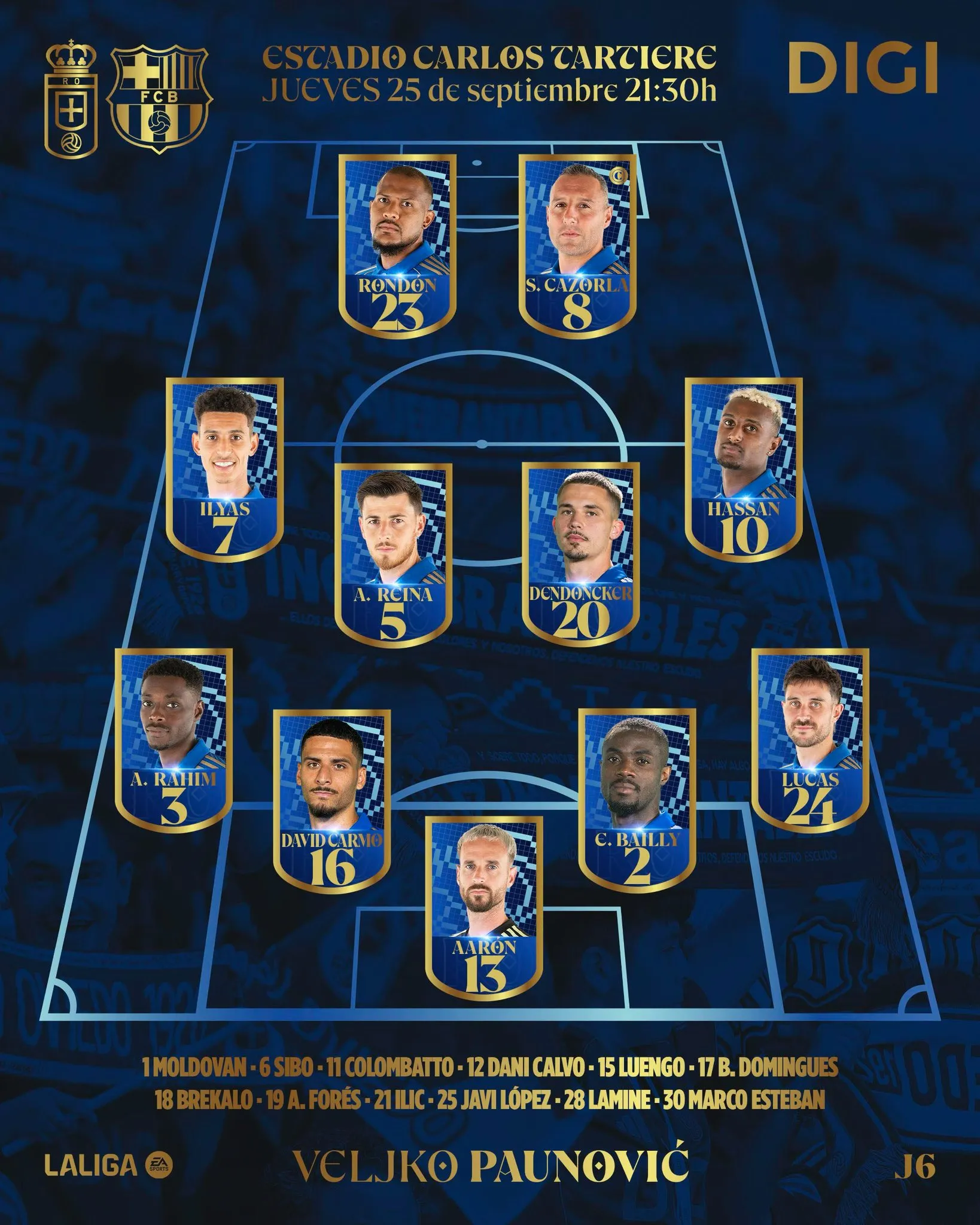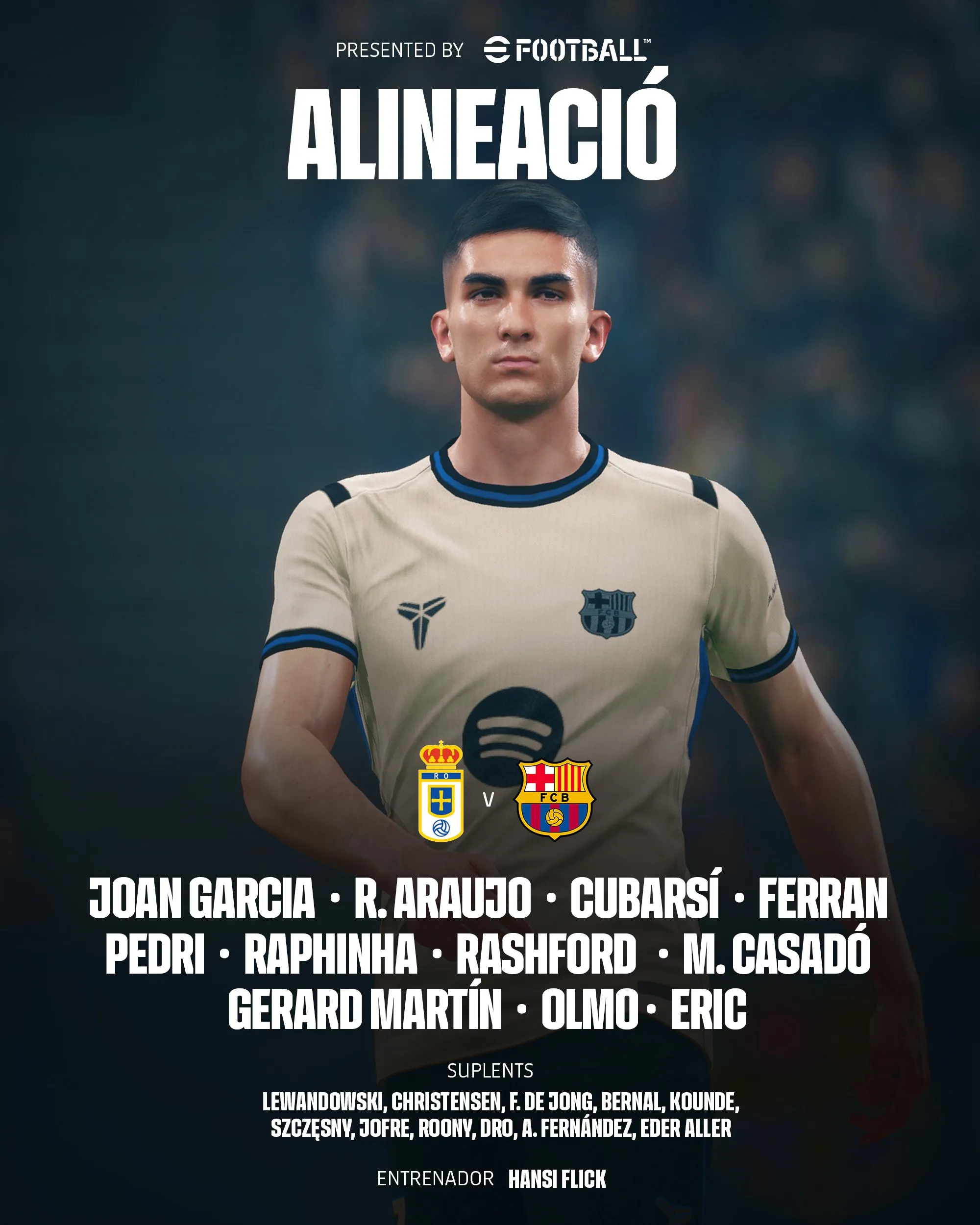 虎扑09月26日讯 北京时间9月26日凌晨3时30分,2025-26赛季西甲联赛第6轮,皇家奥维耶多和巴塞罗那在卡洛斯-塔尔蒂耶雷球场展开对决。赛前两队公布了首发名单。